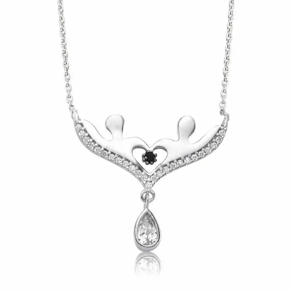 Aşka ve sevgiye bütün saflığıyla kucak açmaya, bir ömür aynı yolda beraber varolmaya ne dersiniz? Cıvıl cıvıl aşk kokulu bu gümüş kolye sizler için tasarlandı... Bu zariflikten yola çıkılarak tasarlanan bu şık kolye; doğum günü hediyesi, sevgililer günü veya veya annelere hediye olarak özel günlerde tercih edilebilecek mükemmel bir seçenektir. Kolye 925 ayar gümüşten üretilmiştir. Gümüş kolyenin zincir uzunluğu 45 cm’dir. Gümüş üzerine rodyum kaplama yapılmıştır. Rodyum kaplama yapılan bayan kolyeler parlaklığını uzun süre muhafaza eder, oksitlenmeyi geciktirir. Tüm gümüş kolyelerde olduğu gibi gümüş aşıklar bayan kolye de el emeği ile üretilmiştir. Üzerinde bulunan taşlar zirkondur. Gümüş ve değerli taşlar nedeniyle belirtilen ürün ağırlığında ± %10 sapma olabilmektedir.