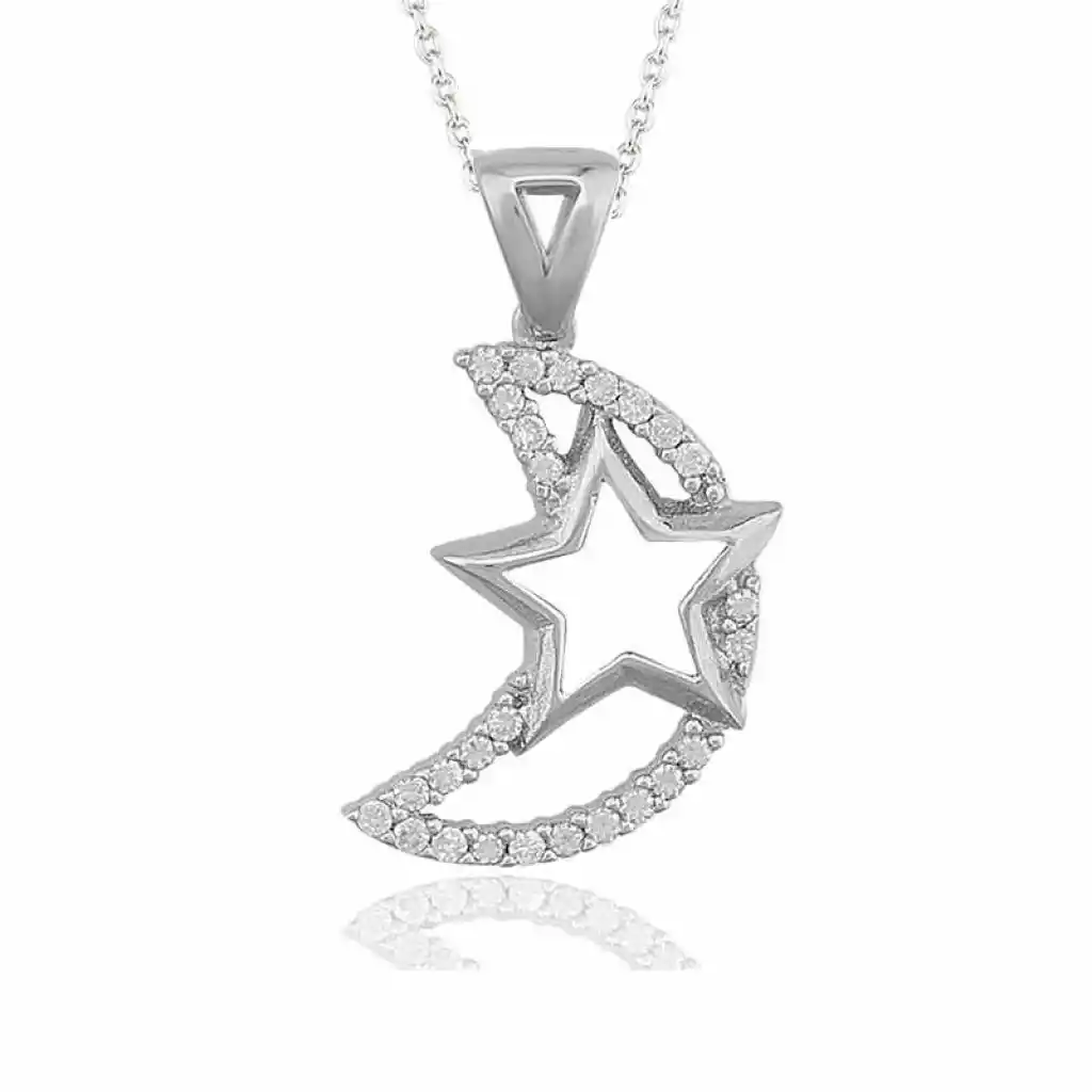 Gümüş Ay Yıldız Bayan Kolye
