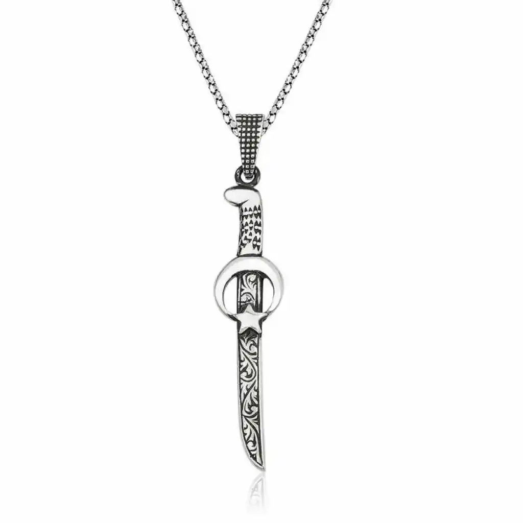 Gümüş Ay Yıldız Figürlü Kılıç Erkek Kolye