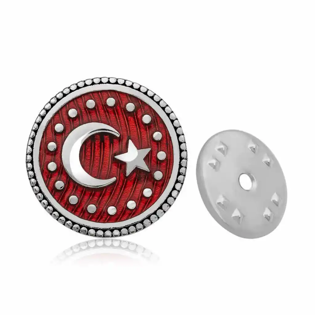 Türk bayrağının ilhamını kan gölüne yansıyan ay ve yıldızdan aldığını biliyoruz. Bayrağın taşıdığı kutsal anlamı taşımak ve sevdiklerinizle paylaşmak için kaçırılmayacak bir fırsat sunuyoruz. Bu şık rozet; doğum günü hediyesi, babalar günü veya özel günlerde tercih edilebilecek mükemmel bir seçenektir. Bu rozet modeli 925 ayar gümüşten imal edilmiştir. Gümüş üzerine rodyum kaplama yapılmıştır. Rodyum kaplama yapılan gümüş rozet modelleri parlaklığını uzun süre muhafa eder, oksitlenmesi gecikir. Tüm gümüş rozetlerde olduğu gibi gümüş ay yıldız rozet modeli de tamamen el emeği ile üretilmiştir. Gümüş ve değerli taşlar nedeniyle belirtilen ortalama ürün ağırlığında ± %10 sapma olabilmektedir.