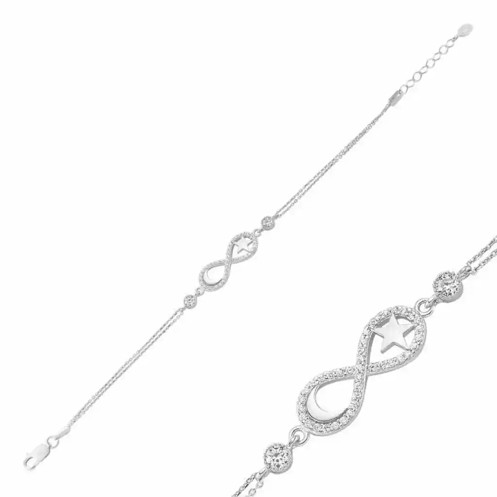 Gümüş Ay Yıldız Sonsuzluk Bayan Bileklik