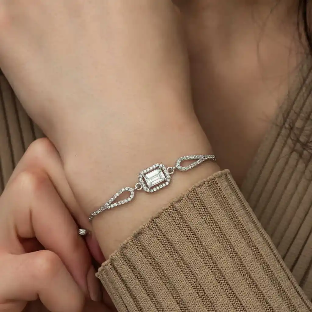 Modaya uyumlu şekilde tasarlanan gümüş baget bileklik modellerini hem gündelik yaşantınızda hem özel gün ve gecelerinizde şık bir şekilde kullanabilirsiniz. Yenilikçi her yaştan kadının beğenisine hitap eden ürünlerle kombinlerinizi tamamlayabilirsiniz. Her biri farklı bir stile hitap edebilen tasarımlarla sizler de spor, klasik ve alternatif giyim tarzlarınıza uygun modellerimizi tercih edebilirsiniz. Bu şık bileklik; doğum günü hediyesi, sevgililer günü hediyesi veya özel günlerde tercih edilebilecek mükemmel bir seçenektir. Gümüş baget taşlı bayan bileklik 925 ayar gümüşten imal edilmiştir. Bu bileklik üzerine rodyum kaplama yapılmıştır. Rodyum kaplama yapılan ürünler parlaklığını uzun süre muhafaza eder, oksitlenmesini geciktirir. Tüm gümüş bayan bileklik modellerinde olduğu gibi gümüş baget taşlı bayan bileklik modeli de el emeği ile üretilmiştir. Gümüş ve değerli taşlar nedeniyle belirtilen ortalama ürün ağırlığında ± %10 sapma olabilmektedir.