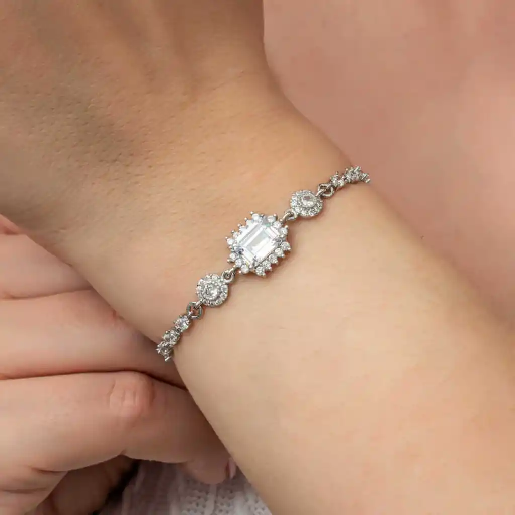 Zarif ve sade aksesuarlardan hoşlanan kadınların ilk tercihleri arasında bulunan su yolu bilekliklere, farklı tasarımlarla sahip olabilirsiniz. İnce ve titiz bir işçilikle tasarlanan su yolu bileklikleri dilediğiniz her ortamda tarzınızı bütünlemek için kullanabilirsiniz. Kıyafetlerinize ışıltı katmak ve bileğinizin zerafetini artırmak üzere su yolu bileklikleri tercih edebilirsiniz. Sade bir stile sahipseniz su yolu bilekliklerle kombinlerinize yumuşak ışıltılar kazandırabilirsiniz. Sevdikleriniz için romantik ve anlamlı bir hediye arıyorsanız bu su yolu bileklikler ideal bir seçim olabilir. Her dönem sevilen bu sade ve şık bilekliği; doğum günü hediyesi, sevgililer günü hediyesi veya annelere hediye olarak özel günlerde tercih edebilirsiniz. Gümüş su yolu kadın bileklik, 925 ayar gümüşten imal edilmiştir. Gümüş bileklik üzerine rodyum kaplama yapılmıştır. Rodyum kaplama yapılan kadın bileklikler parlaklığını uzun süre muhafaza eder, oksitlenmesini geciktirir. Tüm gümüş kadın bileklik modellerinde olduğu gibi bu gümüş su yolu kadın bileklik de tamamı el emeği ile üretilmiştir. Gümüş ve değerli taşlar nedeniyle belirtilen ortalama ürün ağırlığında ± %10 sapma olabilmektedir.