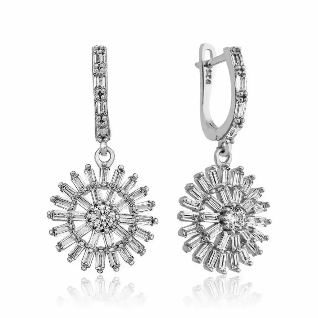 Modası hiçbir zaman geçmeyecek olan baget taşlı bayan küpe, günümüz takıları ile farklı stillerde yeniden yorumlanıyor. Zirkonun göz alıcı ışıltısı, sizi de saracak. Sizin olduğu kadar sevdiklerinizin de keyifle takacağı bu gümüş baget bayan küpe, aynı zamanda sevginizi paylaşabileceğiniz en güzel hediyelerden biri olacaktır. 925 ayar gümüşten imal edilmiştir. Gümüş üzerine rodyum kaplama yapılmıştır. Rodyum kaplama yapılan ürünler parlaklığını uzun süre muhafaza eder, oksitlenmesi gecikir. Gümüş küpelerin tamamında olduğu gibi gümüş baget bayan küpe de el emeği ile üretilmiştir. Gümüş ve değerli taşlar nedeniyle belirtilen ortalama ürün ağırlığında ± %10 sapma olabilmektedir.