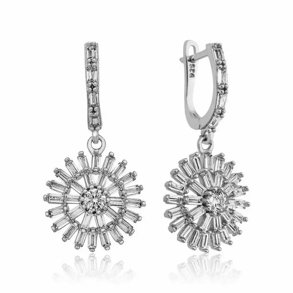 Modası hiçbir zaman geçmeyecek olan baget taşlı bayan küpe, günümüz takıları ile farklı stillerde yeniden yorumlanıyor. Zirkonun göz alıcı ışıltısı, sizi de saracak. Sizin olduğu kadar sevdiklerinizin de keyifle takacağı bu gümüş baget bayan küpe, aynı zamanda sevginizi paylaşabileceğiniz en güzel hediyelerden biri olacaktır. 925 ayar gümüşten imal edilmiştir. Gümüş üzerine rodyum kaplama yapılmıştır. Rodyum kaplama yapılan ürünler parlaklığını uzun süre muhafaza eder, oksitlenmesi gecikir. Gümüş küpelerin tamamında olduğu gibi gümüş baget bayan küpe de el emeği ile üretilmiştir. Gümüş ve değerli taşlar nedeniyle belirtilen ortalama ürün ağırlığında ± %10 sapma olabilmektedir.