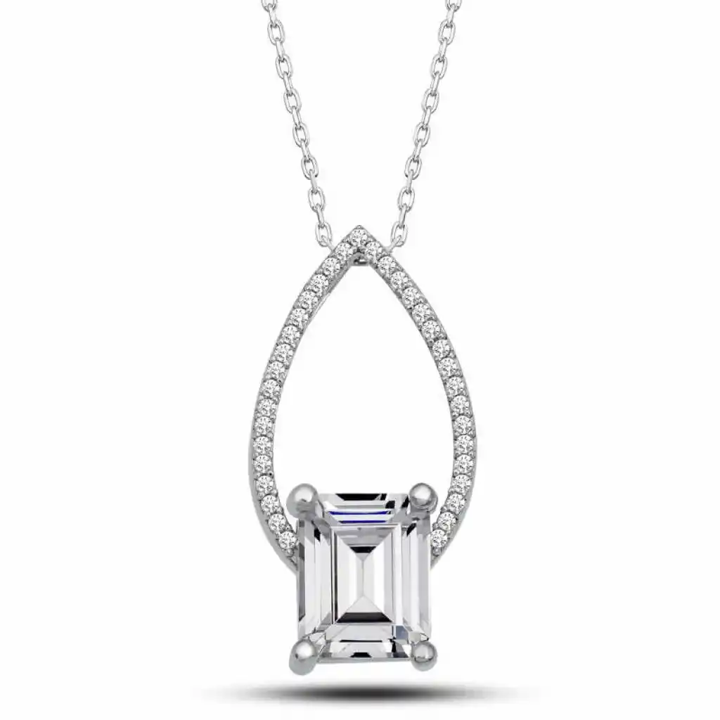 Gümüş Baget Taşlı Damla Kadın Kolye