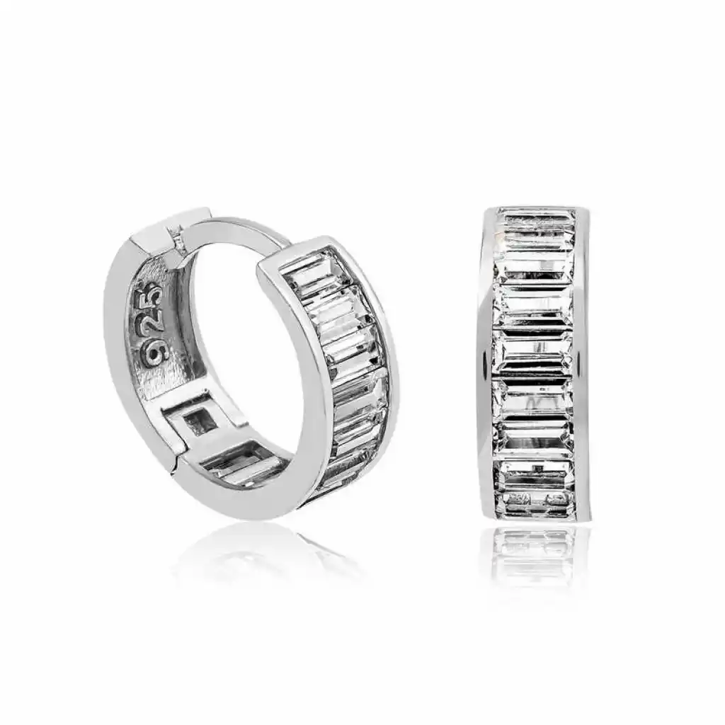 Gümüş Baget Taşlı Halka Küpe
