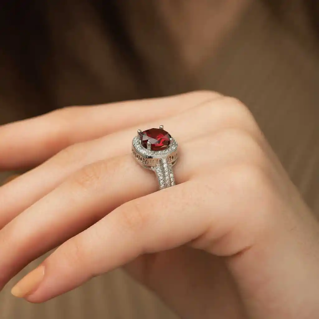 Gümüş Kırmızı Baget Yuvarlak Bayan Yüzük
