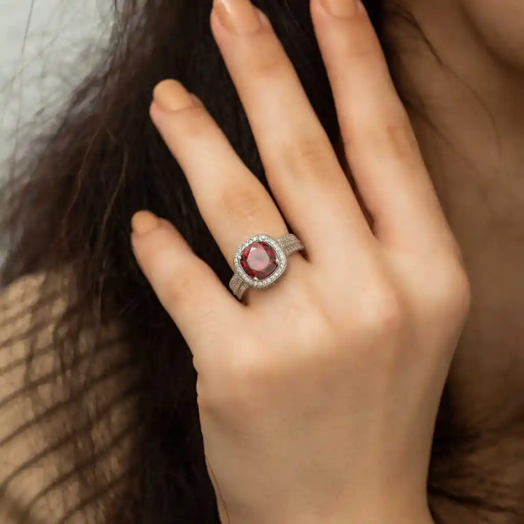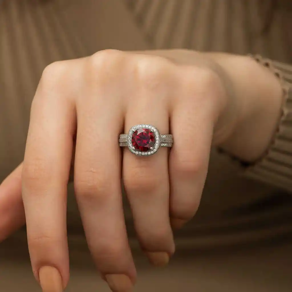 Gümüş Kırmızı Baget Yuvarlak Bayan Yüzük