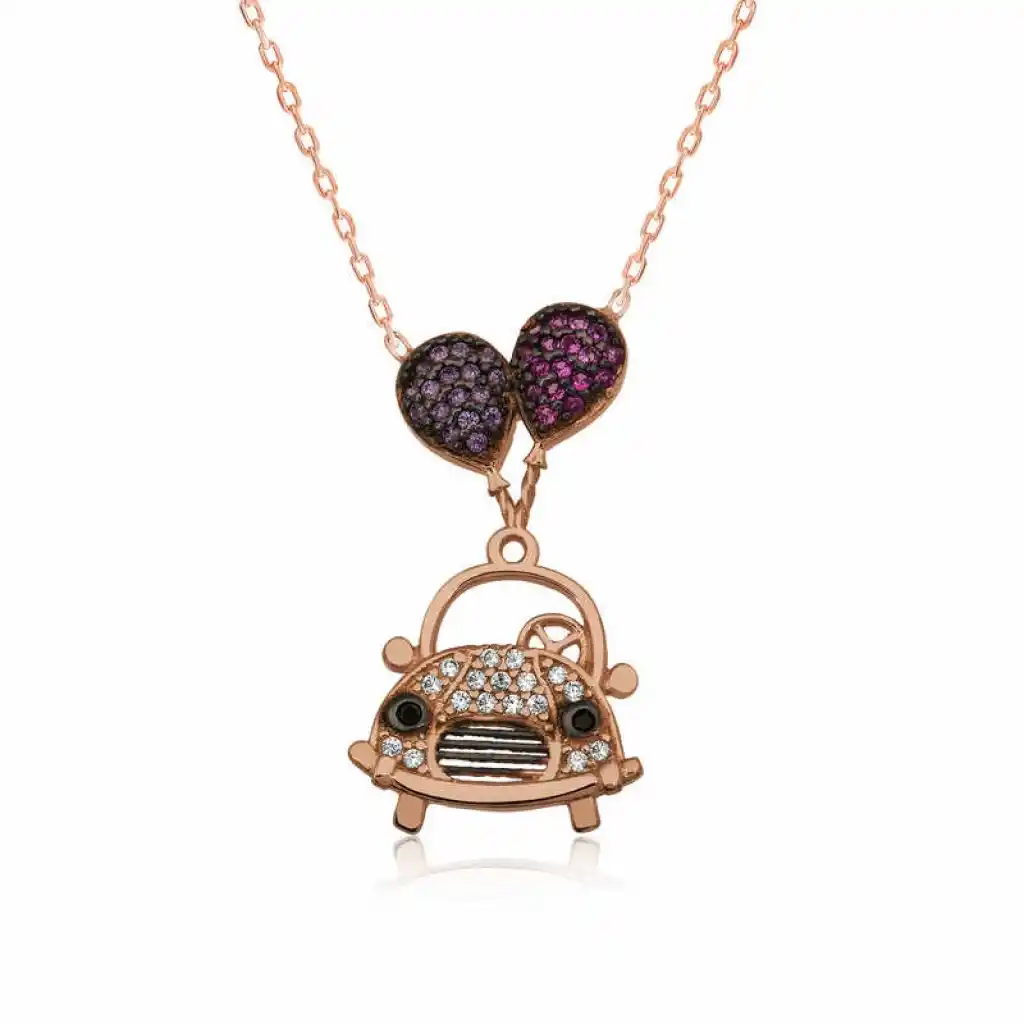 Cıvıl cıvıl aşk kokulu bu gümüş kolye sizler için tasarlandı... Balonlar rengarenk hayal dünyamızı anlatır... Bu zariflikten yola çıkılarak tasarlanan bu şık kolye; doğum günü hediyesi, sevgililer günü veya veya annelere hediye olarak özel günlerde tercih edilebilecek mükemmel bir seçenektir. Kolye 925 ayar gümüşten üretilmiştir. Gümüş kolyenin zincir uzunluğu 45 cm’dir. Gümüş üzerine rose kaplama yapılmıştır. Rose kaplama yapılan bayan kolyeler parlaklığını uzun süre muhafaza eder, gümüş rengini pembe renge dönüştürür ve oksitlenmeyi geciktirir. Tüm gümüş kolyelerde olduğu gibi gümüş balonlu araba bayan kolye de el emeği ile üretilmiştir. Üzerinde bulunan taşlar zirkondur. Gümüş ve değerli taşlar nedeniyle belirtilen ürün ağırlığında ± %10 sapma olabilmektedir.