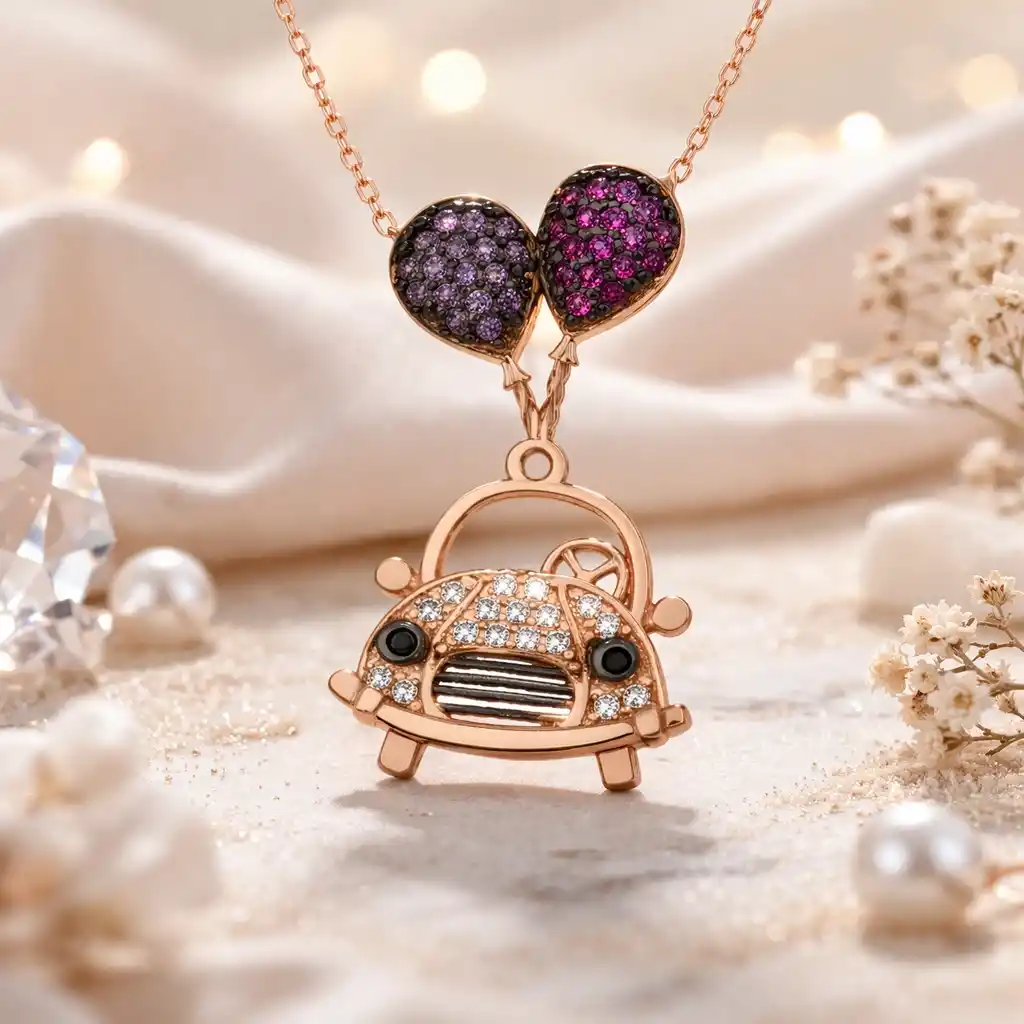 Cıvıl cıvıl aşk kokulu bu gümüş kolye sizler için tasarlandı... Balonlar rengarenk hayal dünyamızı anlatır... Bu zariflikten yola çıkılarak tasarlanan bu şık kolye; doğum günü hediyesi, sevgililer günü veya veya annelere hediye olarak özel günlerde tercih edilebilecek mükemmel bir seçenektir. Kolye 925 ayar gümüşten üretilmiştir. Gümüş kolyenin zincir uzunluğu 45 cm’dir. Gümüş üzerine rose kaplama yapılmıştır. Rose kaplama yapılan bayan kolyeler parlaklığını uzun süre muhafaza eder, gümüş rengini pembe renge dönüştürür ve oksitlenmeyi geciktirir. Tüm gümüş kolyelerde olduğu gibi gümüş balonlu araba bayan kolye de el emeği ile üretilmiştir. Üzerinde bulunan taşlar zirkondur. Gümüş ve değerli taşlar nedeniyle belirtilen ürün ağırlığında ± %10 sapma olabilmektedir.