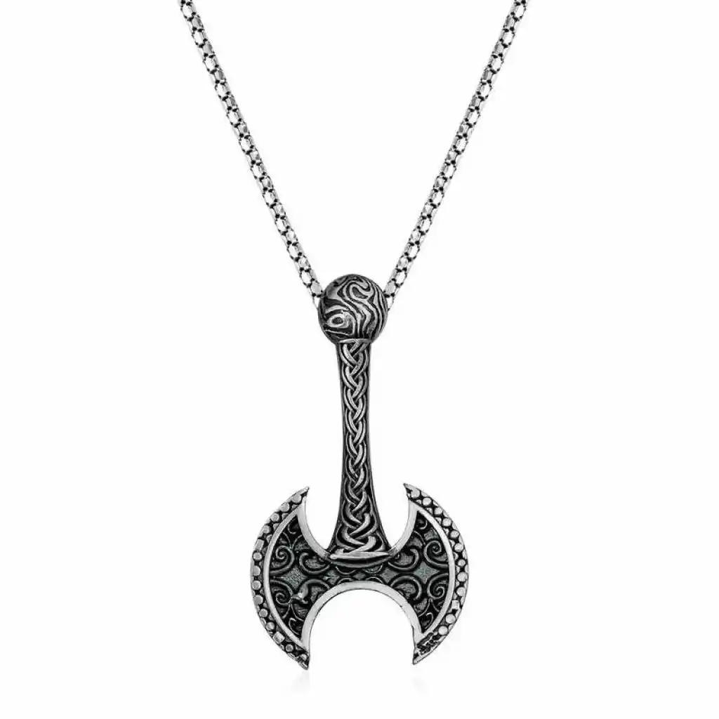 Siz de trendlerin gerisinde kalmaktan hoşlanmıyorsanız balta kolye sizin için doğru bir seçim olacaktır. Tarihimizden arda kalan en önemli savaş aletlerinden olan balta mistik havasıyla sizler için tasarlandı. Bu şık kolye; doğum günü hediyesi, babalar günü veya özel günlerde tercih edilebilecek mükemmel bir seçenektir. Kolye; 925 ayar gümüşten imal edilmiştir. Gümüş balta model kolye eskitme desen ve üzerine oksit kaplama yapılmıştır. Diğer kolyelerde olduğu gibi gümüş balta erkek kolye de el emeği ile üretilmiştir. Gümüş ve değerli taşlar nedeniyle belirtilen ortalama ürün ağırlığında ± %10 sapma olabilmektedir.