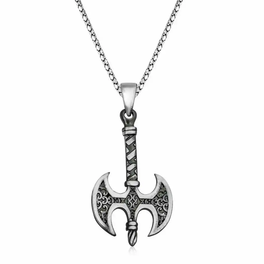 Siz de trendlerin gerisinde kalmaktan hoşlanmıyorsanız balta kolye sizin için doğru bir seçim olacaktır. Tarihimizden arda kalan en önemli savaş aletlerinden olan balta mistik havasıyla sizler için tasarlandı. Bu şık kolye; doğum günü hediyesi, babalar günü veya özel günlerde tercih edilebilecek mükemmel bir seçenektir. Kolye; 925 ayar gümüşten imal edilmiştir. Gümüş balta model kolye eskitme desen ve üzerine oksit kaplama yapılmıştır. Diğer kolyelerde olduğu gibi gümüş balta erkek kolye de el emeği ile üretilmiştir. Gümüş ve değerli taşlar nedeniyle belirtilen ortalama ürün ağırlığında ± %10 sapma olabilmektedir.