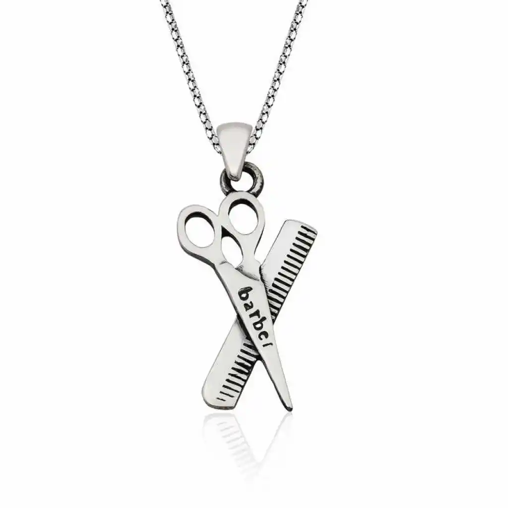 En yeni ve şık tasarımıyla dikkat çeken bu mükemmel kolye ile sevdiklerinizi sevindirmeye ne dersiniz? Bu şık kolye; doğum günü hediyesi, babalar günü veya özel günlerde tercih edilebilecek mükemmel bir seçenektir. Kolye; 925 ayar gümüşten imal edilmiştir. Gümüş üzerine oksit kaplama yapılmıştır. Diğer kolyelerde olduğu gibi gümüş berber erkek kolye de el emeği ile üretilmiştir. Gümüş ve değerli taşlar nedeniyle belirtilen ortalama ürün ağırlığında ± %10 sapma olabilmektedir.
