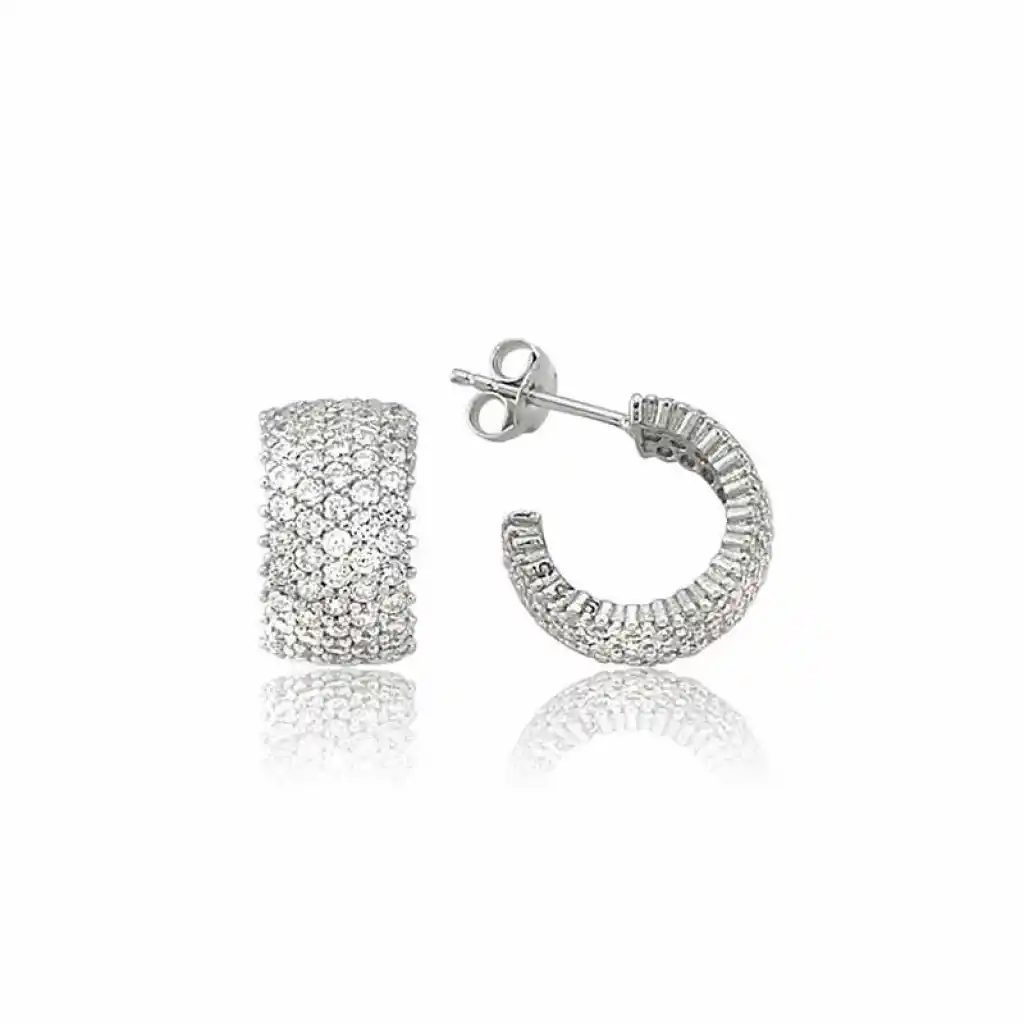 Işıl ışıl zirkon taşlarla süslenmiş bu şık küpe; doğum günü hediyesi, sevgililer günü hediyesi veya annelere hediye olarak özel günlerde tercih edebileceğiniz çok şık bir seçenektir. Bu tamtur küpe; 925 ayar gümüşten imal edilmiştir. Gümüş üzerine rodyum kaplama yapılmıştır. Rodyum kaplama yapılan gümüş küpeler parlaklığını uzun süre muhafaza eder, oksitlenmesi gecikir. Üzerindeki taşlar zirkondur. Tüm bayan gümüş küpelerde olduğu gibi gümüş tamtur bayan küpe de el emeği ile üretilmiştir. Üzerinde bulunan taşlar zirkondur. Gümüş ve değerli taşlar nedeniyle belirtilen ortalama ürün ağırlığında ± %10 sapma olabilmektedir.