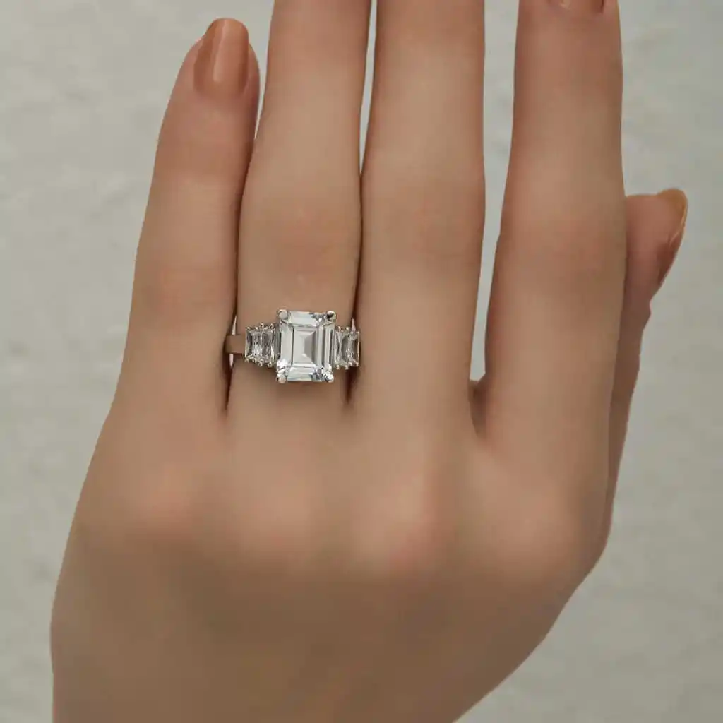 Gümüş Beyaz Baget Taşlı Bayan Yüzük