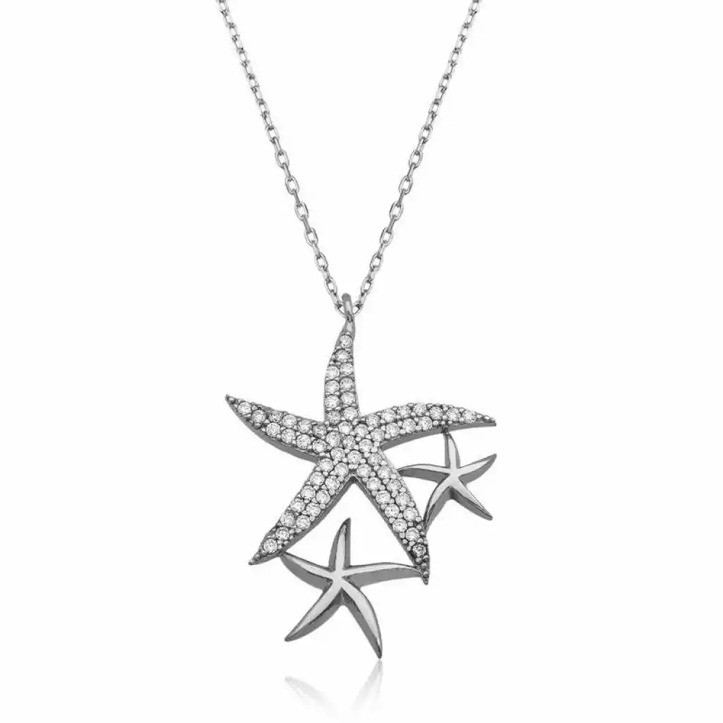 Gümüş Beyaz Deniz Yıldızları Bayan Kolye