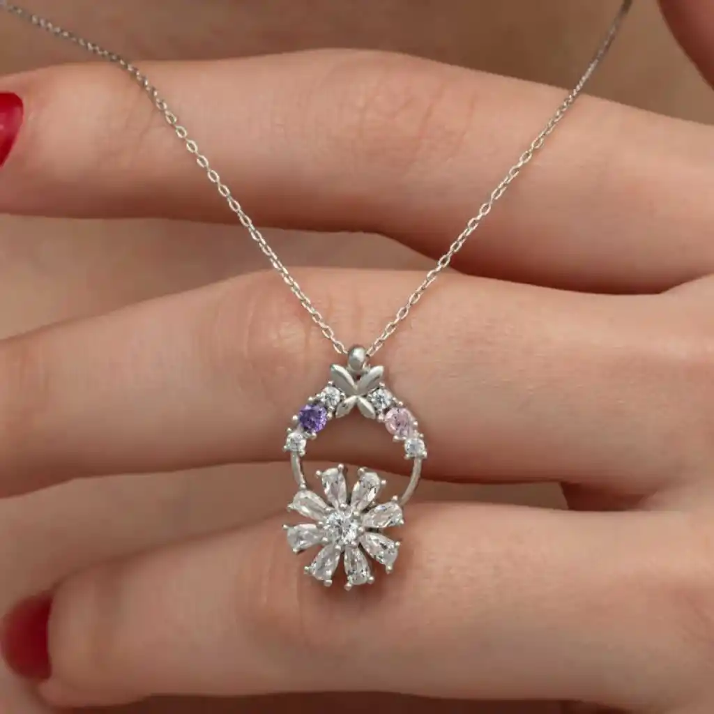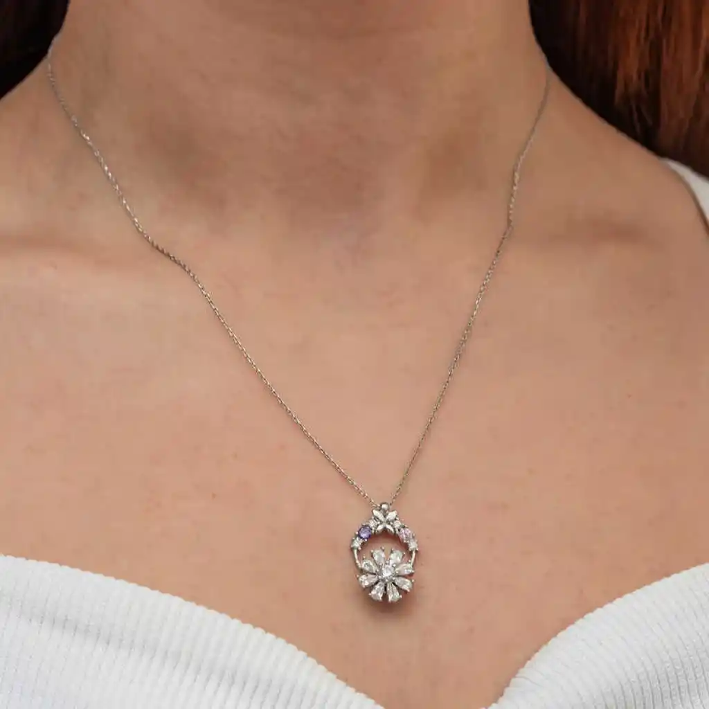 Gümüş Beyaz Dönen Çiçek Kadın Kolye