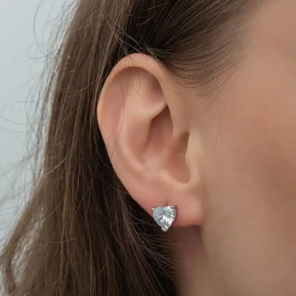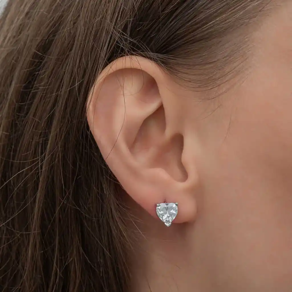 Gümüş Beyaz Kalpli Çivili Kadın Küpe