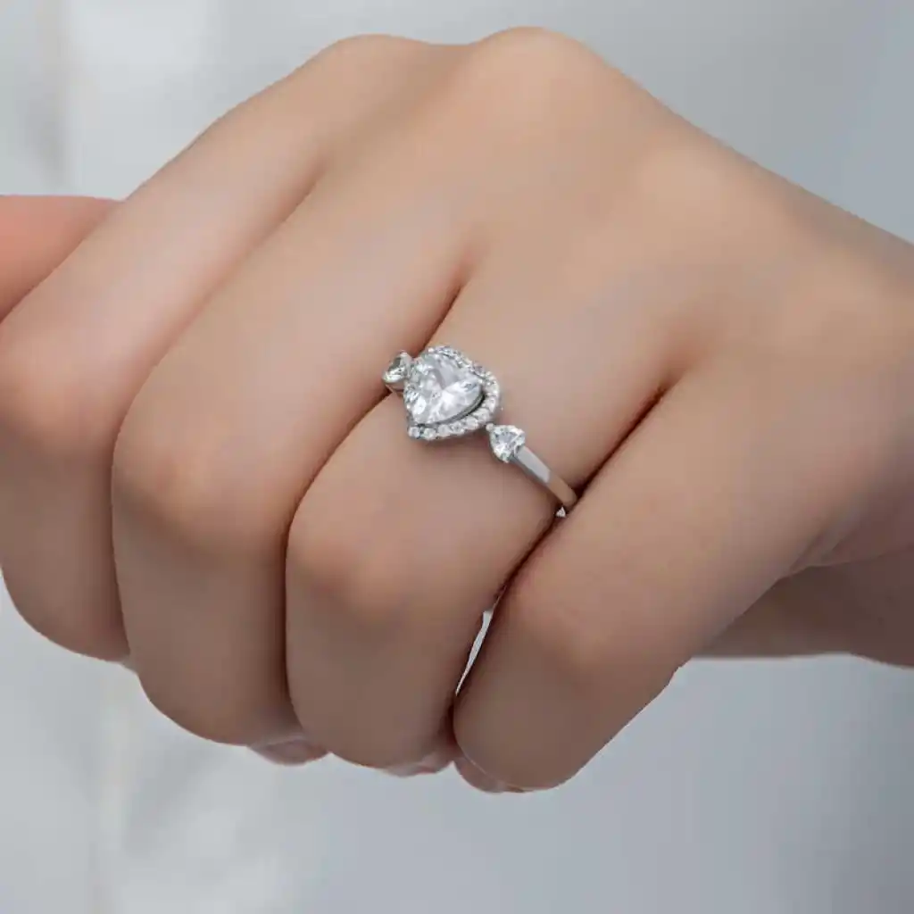 Gümüş Beyaz Taşlı Kalpli Kadın Yüzük