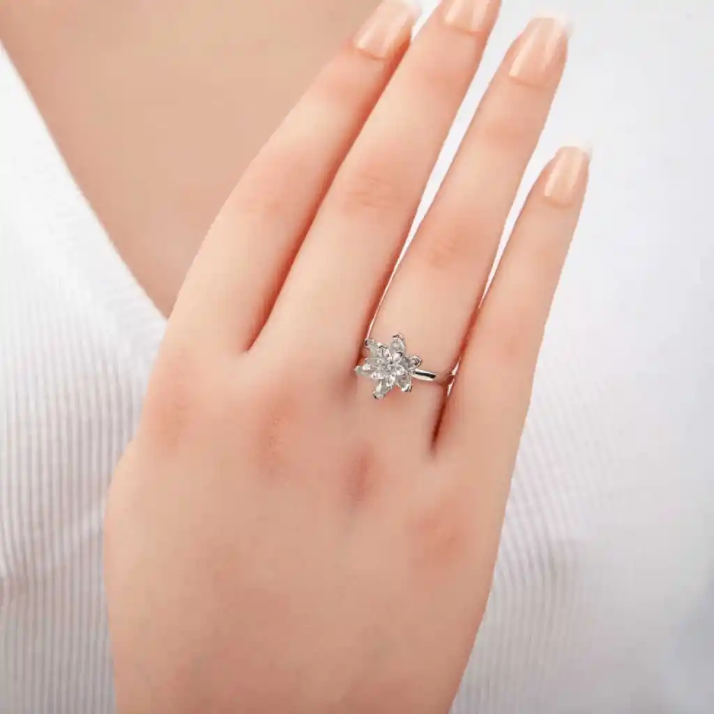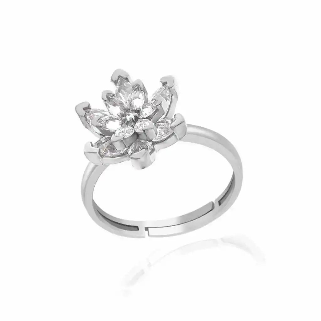 Gümüş Ayarlanabilen Beyaz Taşlı Lotus Çiçeği Kadın Yüzük