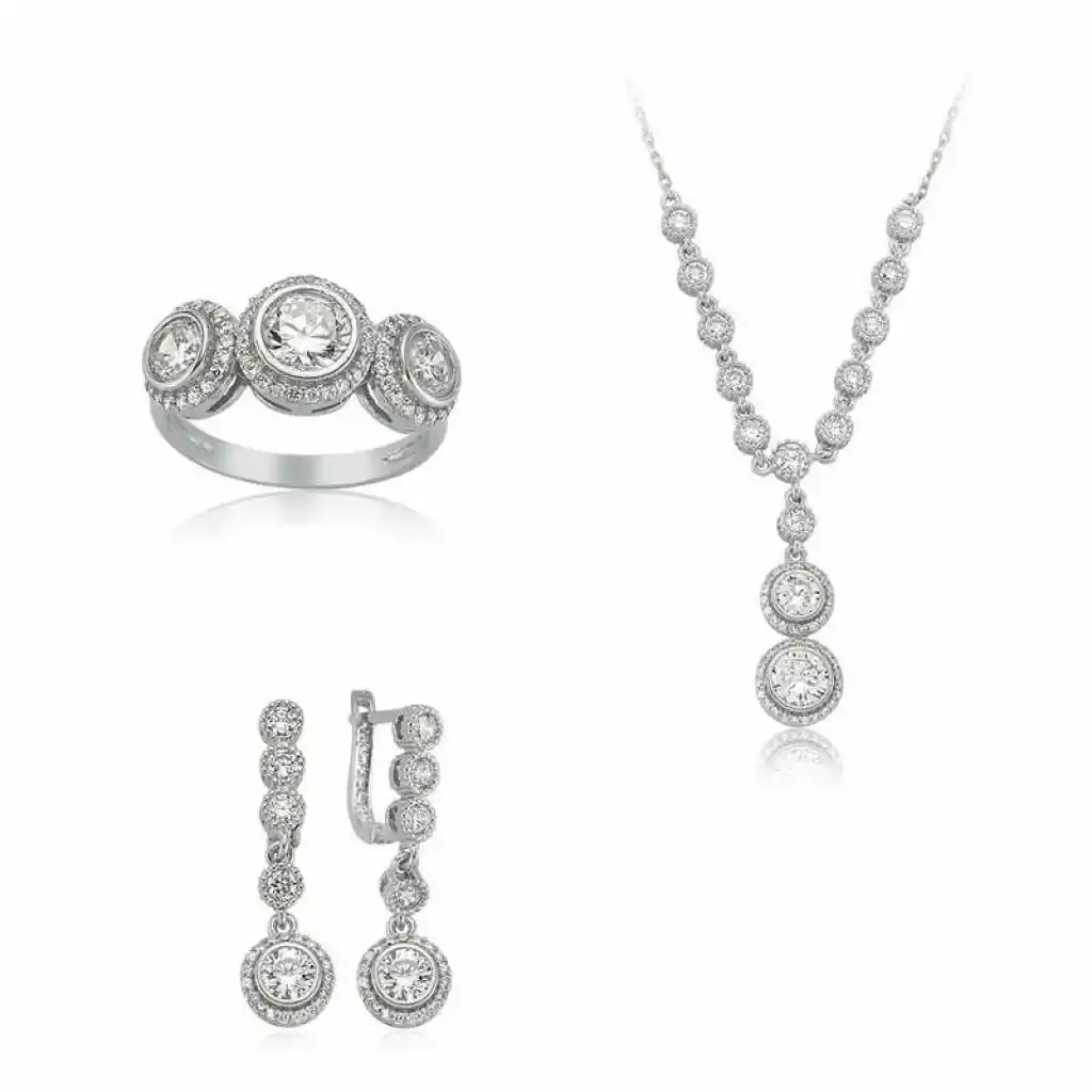 Gümüş Beyaz Taşlı Su Yolu Bayan Set