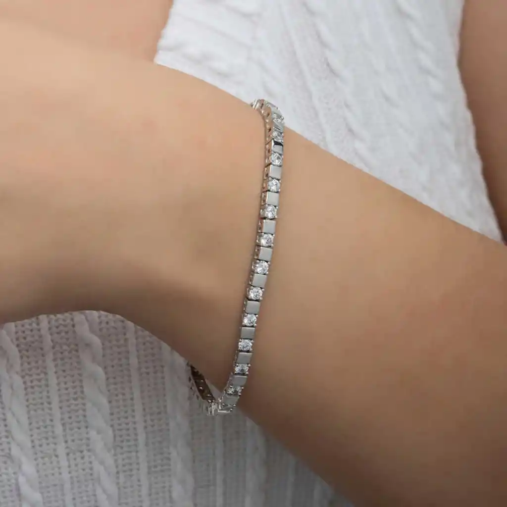Gündelik hayatta, özel günler ve gecelerde tercih edebileceğiniz ışıl ışıl taşları ile yıldızları anımsatan bu bilekliği severek kullanacaksınız. Şık bir görünüm yakalamak isteyen tüm kadınlara hitap eden, modası geçmeyecek olan taşlı gümüş bileklik sizleri bekliyor. Gümüş beyaz taşlı su yolu kadın bileklik; doğum günü hediyesi, sevgililer günü hediyesi veya annelere hediye olarak özel günlerde tercih edilebilecek mükemmel bir seçenektir. Gümüş beyaz taşlı su yolu kadın bileklik 925 ayar gümüşten imal edilmiştir. Gümüş üzerine rodyum kaplama yapılmıştır. Rodyum kaplama yapılan kadın bileklik parlaklığını uzun süre muhafaza eder ve oksitlenmesi gecikir. Tüm kadın bilekliklerde olduğu gibi gümüş beyaz taşlı su yolu kadın bileklik de el emeği ile üretilmiştir. Gümüş ve değerli taşlar nedeniyle belirtilen ortalama ürün ağırlığında ± %10 sapma olabilmektedir.