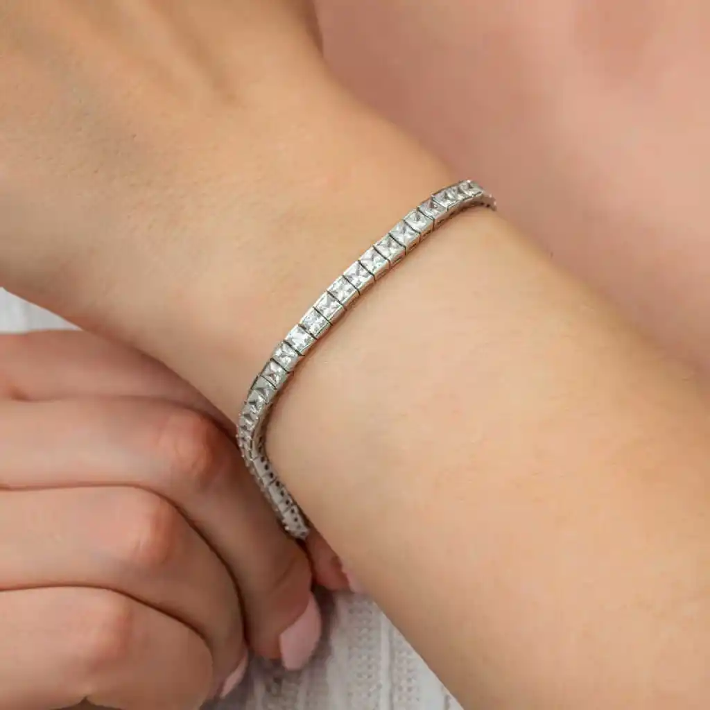 Gündelik hayatta, özel günler ve gecelerde tercih edebileceğiniz ışıl ışıl taşları ile yıldızları anımsatan bu bilekliği severek kullanacaksınız. Şık bir görünüm yakalamak isteyen tüm kadınlara hitap eden, modası geçmeyecek olan taşlı gümüş bileklik sizleri bekliyor. Gümüş beyaz taşlı su yolu kadın bileklik; doğum günü hediyesi, sevgililer günü hediyesi veya annelere hediye olarak özel günlerde tercih edilebilecek mükemmel bir seçenektir. Gümüş beyaz taşlı su yolu kadın bileklik 925 ayar gümüşten imal edilmiştir. Gümüş üzerine rodyum kaplama yapılmıştır. Rodyum kaplama yapılan kadın bileklik parlaklığını uzun süre muhafaza eder ve oksitlenmesi gecikir. Tüm kadın bilekliklerde olduğu gibi gümüş beyaz taşlı su yolu kadın bileklik de el emeği ile üretilmiştir. Gümüş ve değerli taşlar nedeniyle belirtilen ortalama ürün ağırlığında ± %10 sapma olabilmektedir.