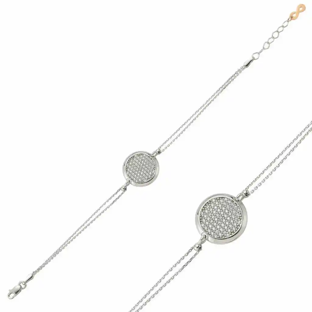Gümüş Beyaz Taşlı Yuvarlak Bayan Bileklik