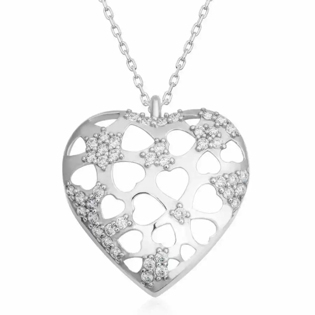 Kalp simgesi daima koşulsuz sevginin ve aşkın sembolü olmuştur. Dini öğretilerde ise kalbin gücü sınırsızdır. Çünkü kalp Yaradanın evi, bizim ise evrene açılan gerçeklik kapımızdır. Bu şık gümüş bombeli kalp kadın kolye; doğum günü hediyesi, sevgililer günü hediyesi veya annelere hediye olarak özel günlerde tercih edilebilecek mükemmel bir seçenektir. Gümüş kalp kadın kolye 925 ayar gümüşten imal edilmiştir. Bu kolye üzerinde rodyum kaplama yapılmıştır. Rodyum kaplama yapılan gümüş kadın kolye modelleri parlaklığını uzun süre muhafaza eder. Üzerinde bulunan taşlar zirkondur. Tüm gümüş kadın kolye modellerimizde olduğu gibi gümüş bombeli kalp kadın kolye modeli de el emeği ile üretilmiştir. Gümüş ve değerli taşlar nedeniyle belirtilen ortalama ürün ağırlığında ± %10 sapma olabilmektedir.