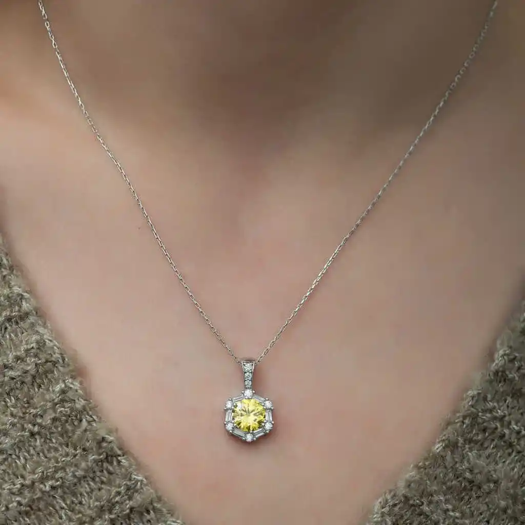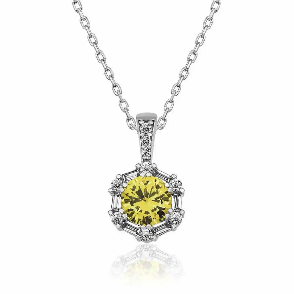 Gümüş Buğday Sarısı Baget Taşlı Bayan Kolye