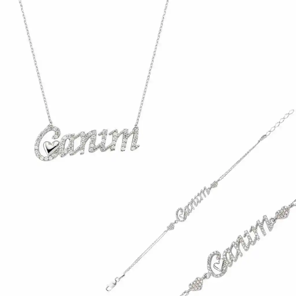 Gümüş Canım Yazılı Kalp Bayan Set