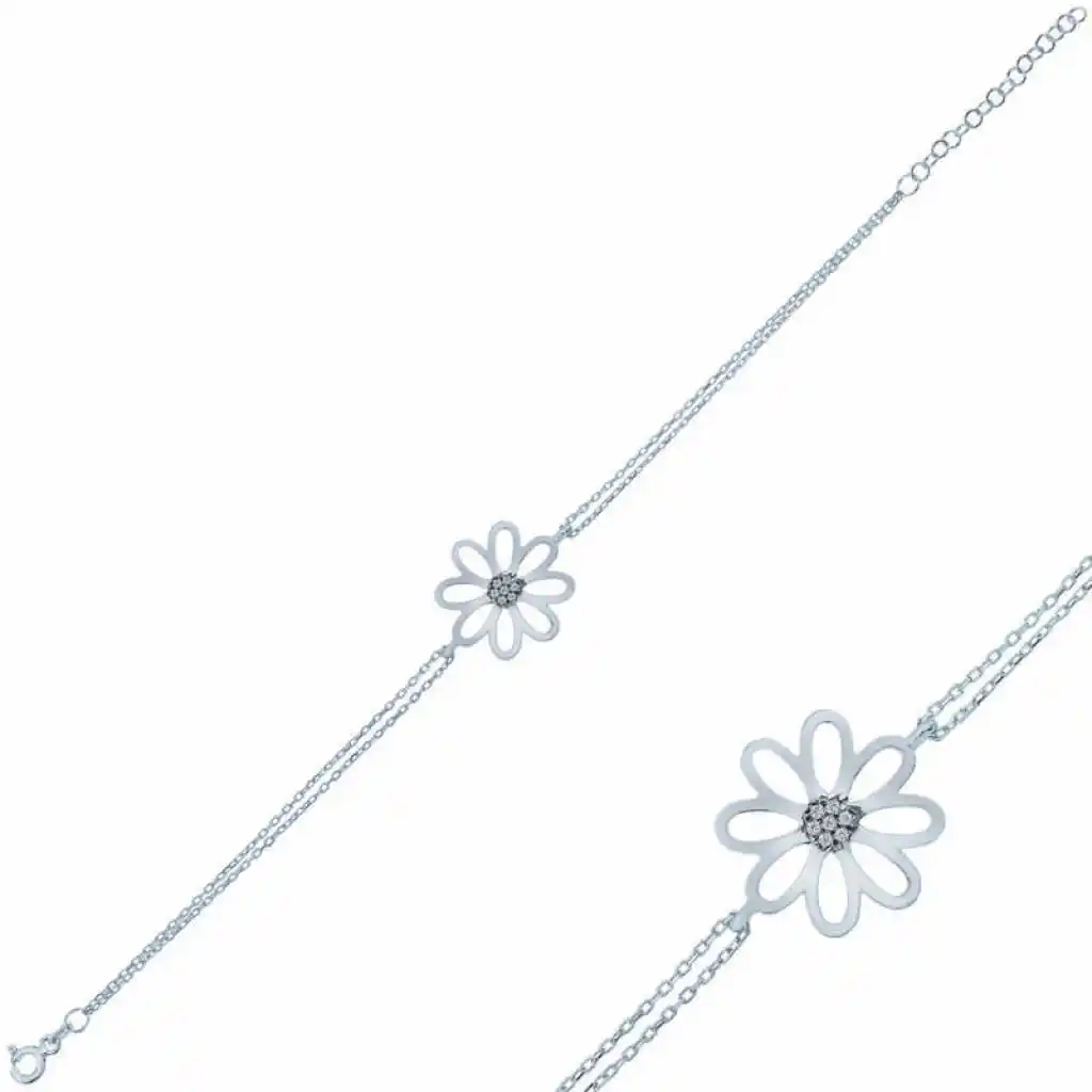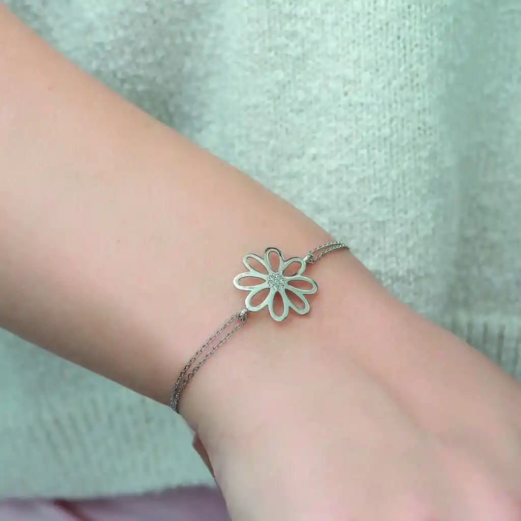 Sevdiklerinize duygularınızı ifade etmenin yolu neden çiçek desenli zarif bir bileklik olmasın? Özel zamanlarda O’na gönderebileceğiniz, hediye seçenekleri arasında yer alan bu şık bileklik sevdiklerinizi sevindirmenin en güzel yolları arasında yer almaktadır. En kaliteli, en ışıltılı taşlarla hazırlanmış gümüş çiçek bayan bileklik; sevgisini bir kez daha anlatmak isteyenleri, sen bir çiçeksin demek isteyenleri bekliyor. Bu özel tasarım gümüş çiçek bayan bileklik 925 ayar gümüşten imal edilmiştir. Gümüş üzerine rodyum kaplama yapılmıştır. Rodyum kaplama yapılan gümüş bayan bileklik modelleri parlaklığını uzun süre muhafaza eder ve oksitlenmesi gecikir. Tüm bayan gümüş bileklik modellerinde olduğu gibi gümüş çiçek bayan bileklik de el emeği ile üretilmiştir. Gümüş ve değerli taşlar nedeniyle belirtilen ürün ağırlığında ± %10 sapma olabilmektedir.