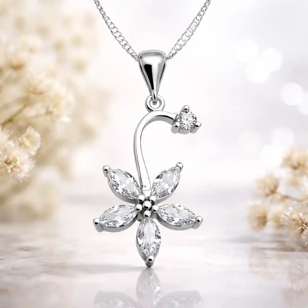 Sevdiklerinize duygularınızı ifade etmenin en özel ve zarif yolu O’na gönderebileceğiniz şık, rengarenk ve mis kokulu çiçeklerdir. Özel günlerde verilecek hediyeler arasında olan çiçek, bu kez gümüş kolye olarak tasarlandı... En kaliteli, en parlak, en ışıltılı taşlarla hazırlanmış gümüş çiçek bayan kolye sevgisini bir kez daha anlatmak isteyenleri, sen bir çiçeksin demek isteyenleri bekliyor. Bu özel tasarım çiçek bayan kolye 925 ayar gümüşten imal edilmiştir. Gümüş üzerine rodyum kaplama yapılmıştır. Rodyum kaplama yapılan gümüş bayan kolyeler parlaklığını uzun süre muhafaza eder ve oksitlenmesi gecikir. Kolye üzerinde bulunan beyaz taşlar zirkondur. Tüm bayan gümüş kolyelerde olduğu gibi gümüş çiçek bayan kolye de el emeği ile üretilmiştir. Gümüş ve değerli taşlar nedeniyle belirtilen ürün ağırlığında ± %10 sapma olabilmektedir.