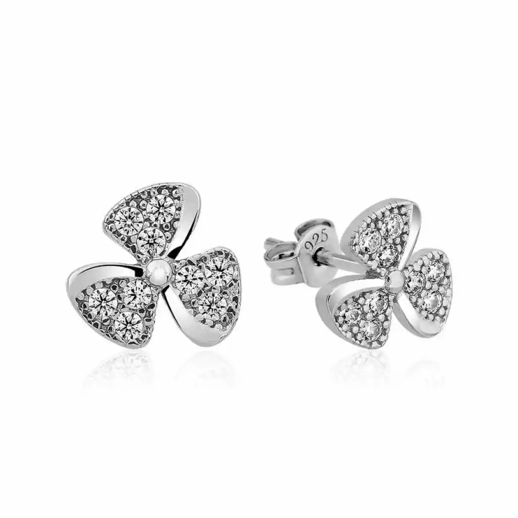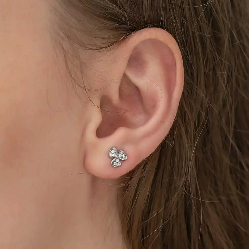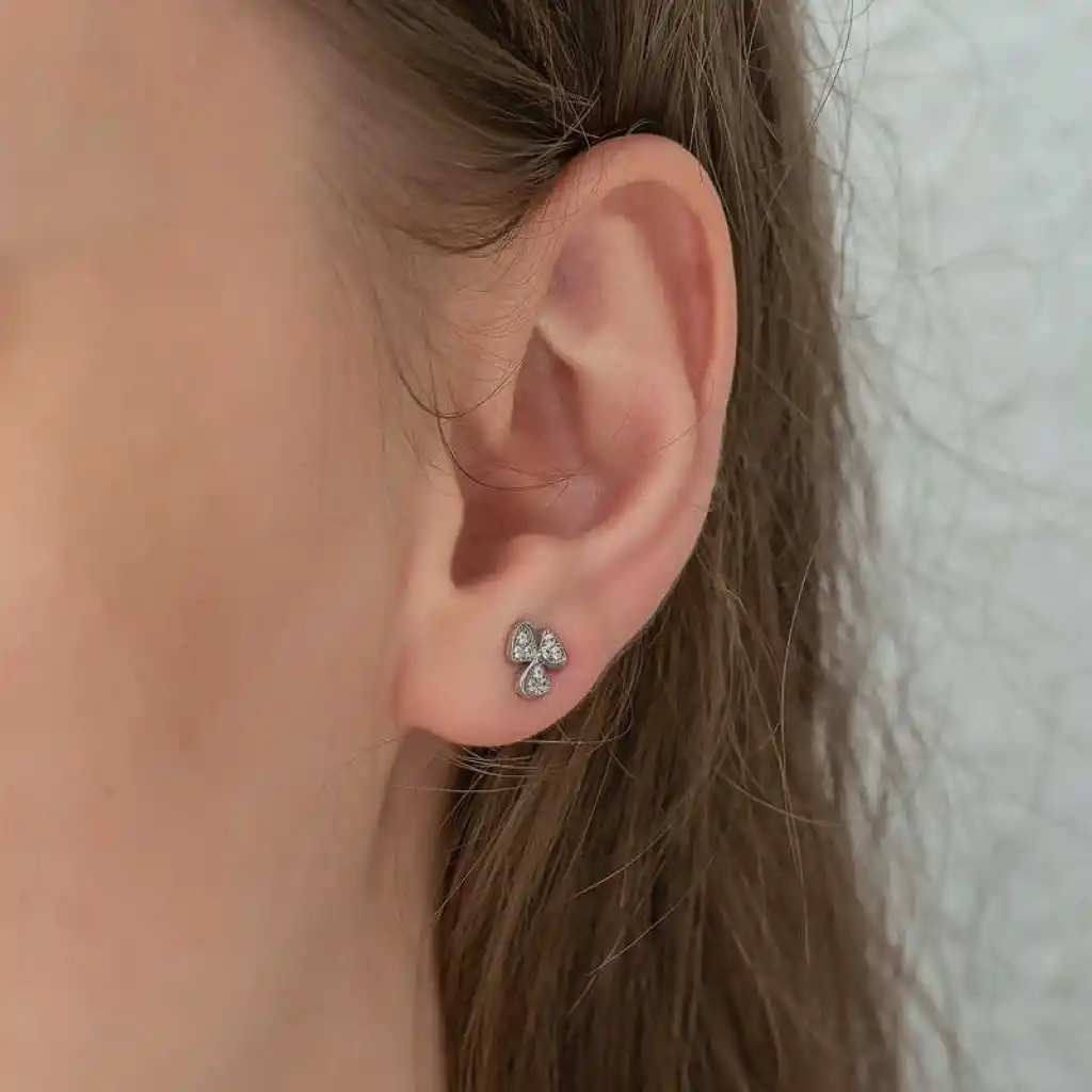 Gümüş Çiçek Çivili Bayan Küpe