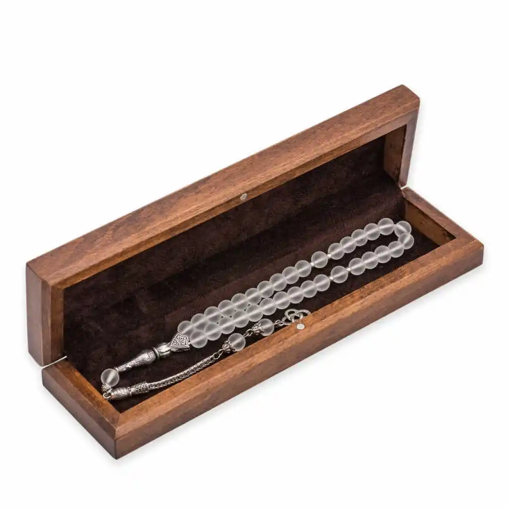 Gümüş Çiçek Desenli Ahşap Tesbih Kutusu