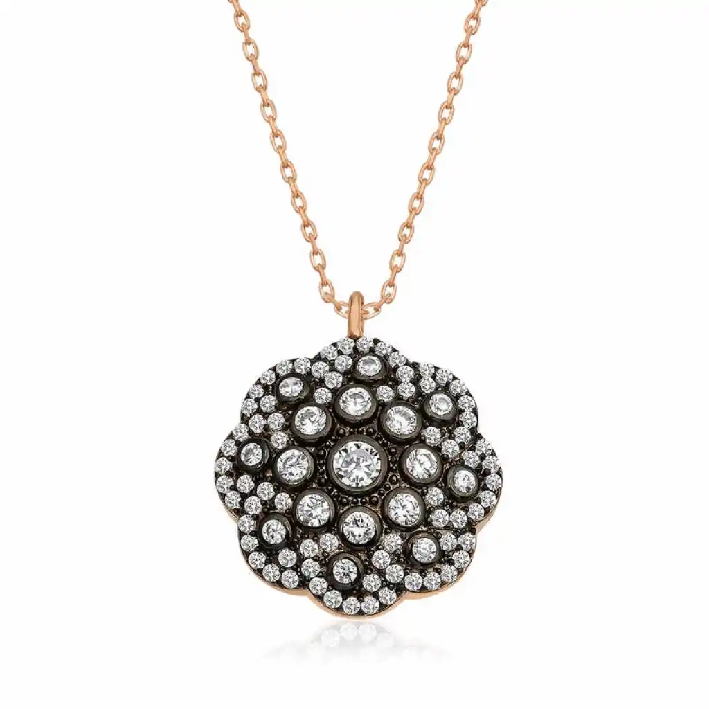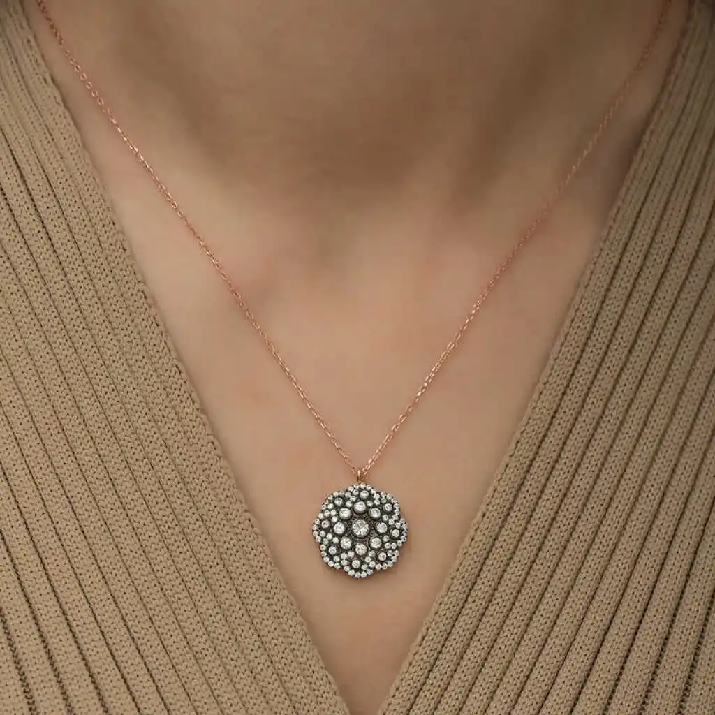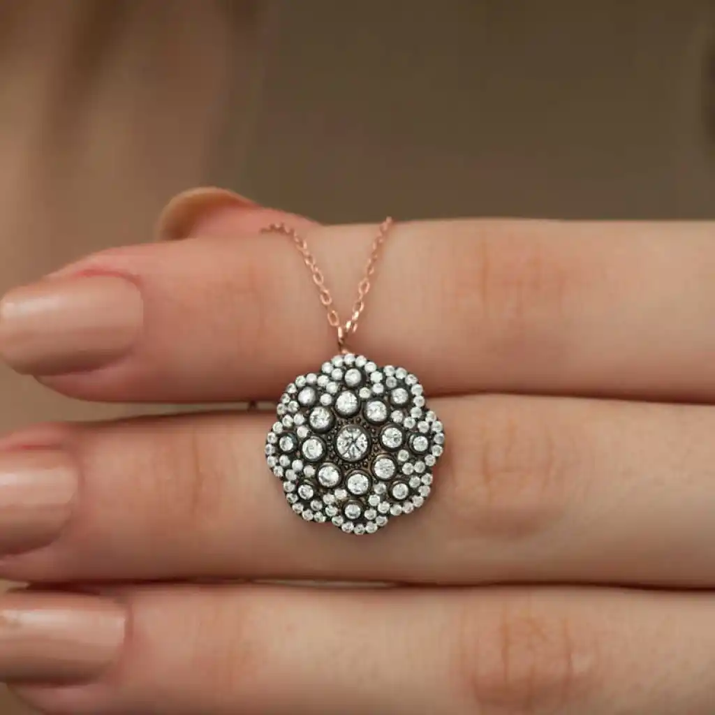 Gümüş Elmas Montür Çiçek Bayan Kolye