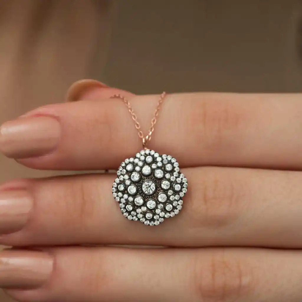 Gümüş Elmas Montür Çiçek Bayan Kolye