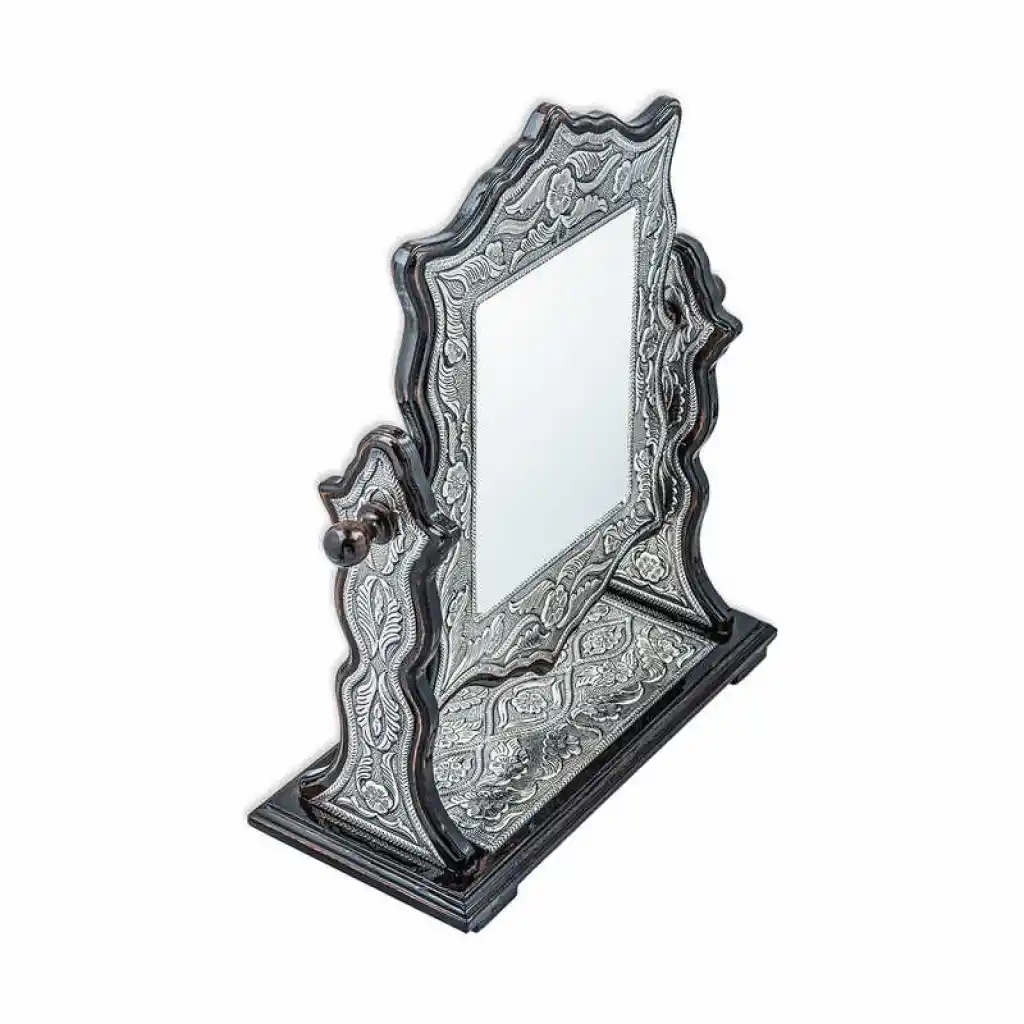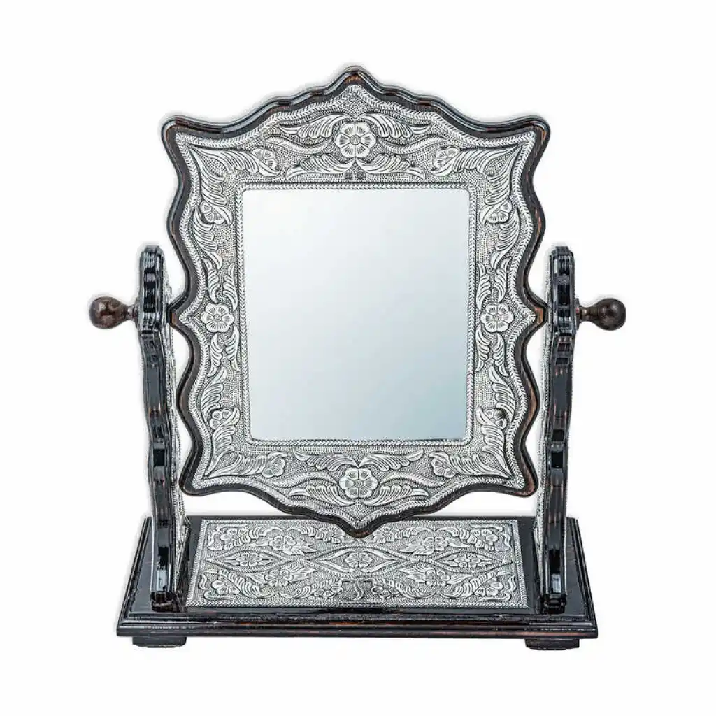 Gümüş Çiçek Desenli Kare Çift Taraflı Ayna