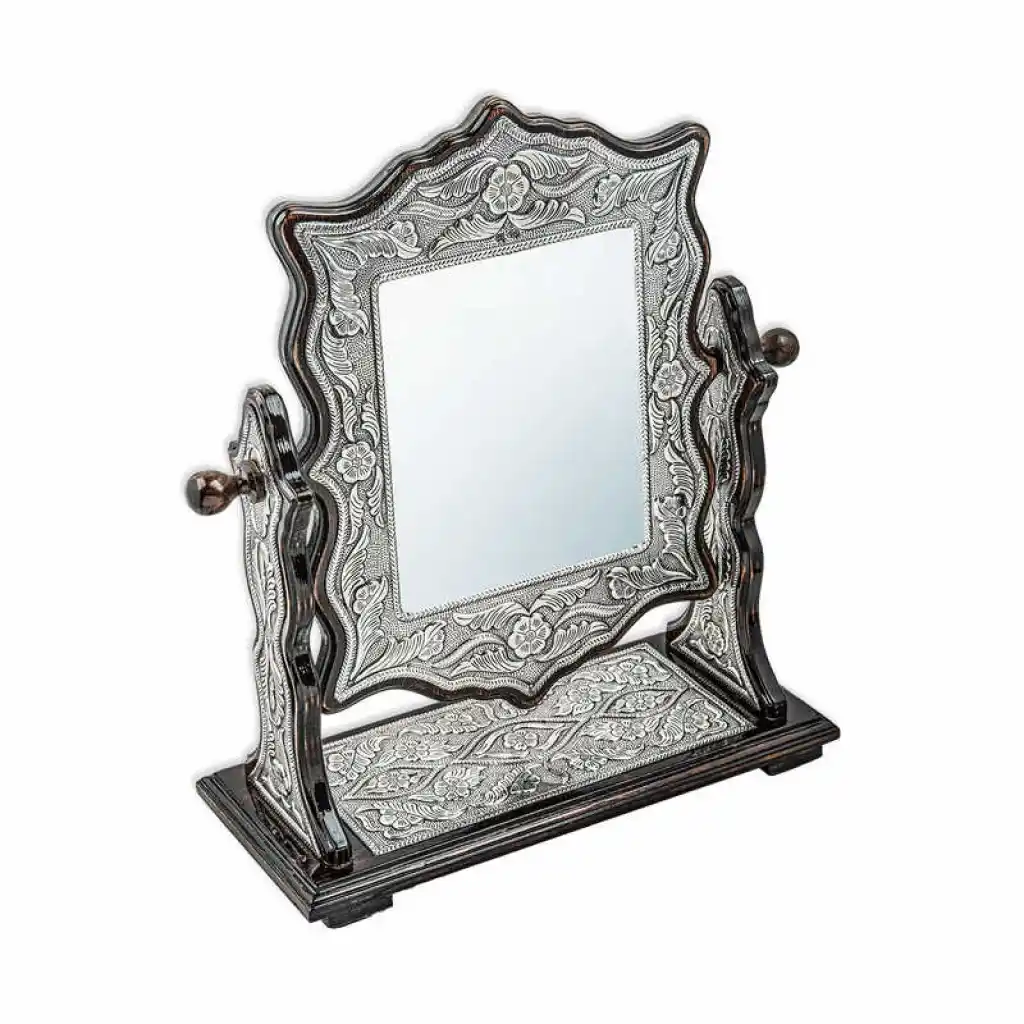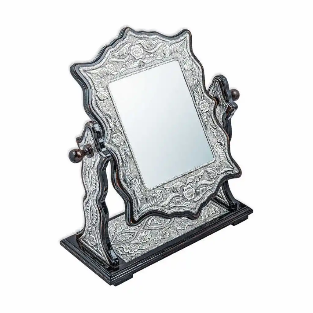 Gümüş Çiçek Desenli Kare Çift Taraflı Ayna