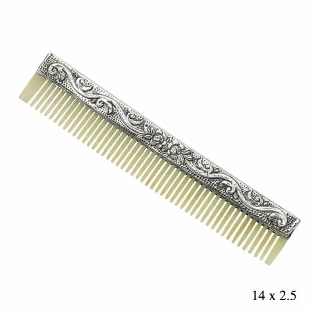 Gümüş kaplama modern desenli tarak saçlarınıza daha fazla ışıltı katacak. Tüm sevdiklerinize hediye edebileceğiniz ya da kendinizi şımartabileceğiniz iyi bir tercih sizi bekliyor. Ürünlerimizin tamamı el emeği ile üretilmiştir ve değerli taşlar nedeniyle ürün ağırlığında ± %5 sapma olabilmektedir.