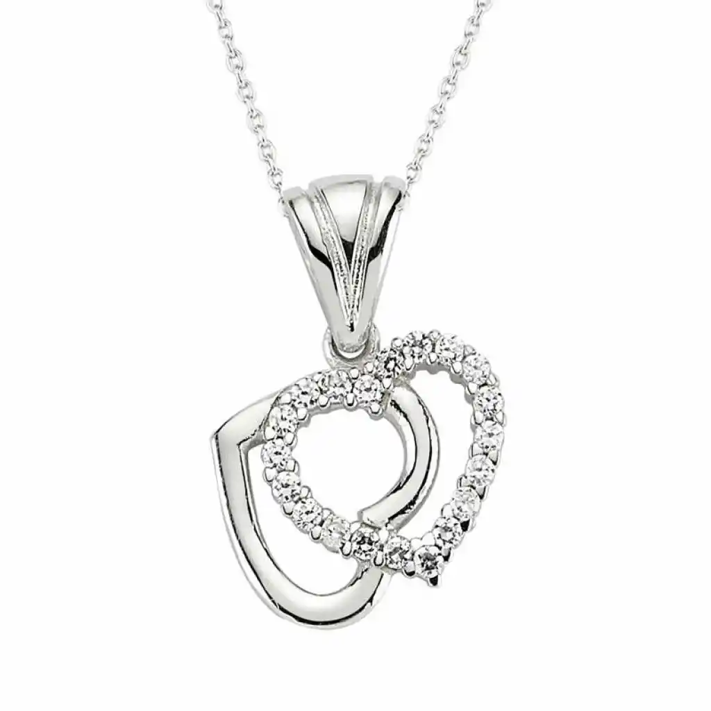 Biri taşlı biri taşsız olan iki tane kalpten oluşan bu harika tasarım kalp kolye modeli 925 ayar gümüşten imal edilmiştir. Kalp tasarımlı kolyeler aşkı çağrıştırır. Bu yüzden gümüş zirkon taşlı çift kalp kolye sevdiğinize güzel bir hediye seçeneği de olabilir. Kolye üzerinde zirkon taşlar kullanılmıştır. Oksitlenmesi gecikmesi ve parlaklığı uzun süre muhafaza etmesi için de rodyum kaplama yapılmıştır. Rodyum kaplama yapılan gümüş bayan kolye modelleri parlaklığını uzun süre muhafaza eder. Ortalama 45 cm. uzunluğunda gümüş zinciri vardır. Bu gümüş zirkon taşlı kalp kolye el emeği ile üretilmiştir. Gümüş ve değerli taşlar nedeniyle belirtilen ürün ağırlığında ± %10 sapma olabilmektedir.