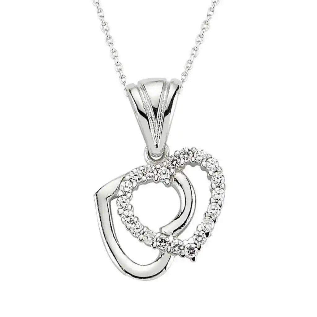 Gümüş Çift Kalpli Bayan Kolye