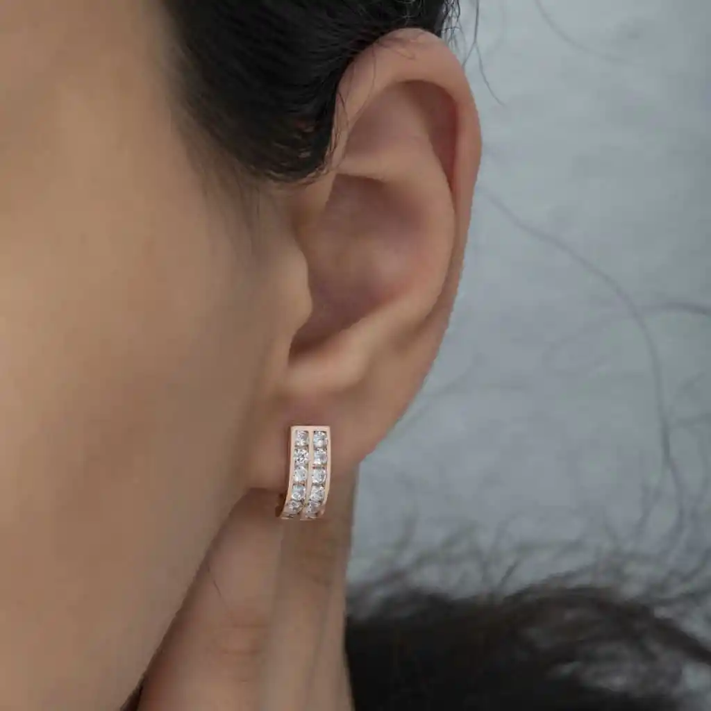 Gündelik hayatta ve özel günlerde şık tasarımı ile dikkat çeken bu küpeyi severek kullanacaksınız. Tüm kadınlara hitap eden, modası geçmeyecek olan çift sıra beyaz taşlı j kadın gümüş küpe sizleri bekliyor. Gümüş çift sıra beyaz taşlı j kadın küpe; doğum günü hediyesi, sevgililer günü hediyesi veya annelere hediye olarak özel günlerde tercih edilebilecek mükemmel bir seçenektir. Gümüş çift sıra beyaz taşlı j kadın küpe; 925 ayar gümüşten imal edilmiştir. Gümüş üzerine rose kaplama yapılmıştır. Rose kaplama yapılan gümüş küpe modelleri parlaklığını uzun süre muhafaza eder ve oksitlenmesi gecikir. Tüm kadın küpelerde olduğu gibi bu küpe modeli de el emeği ile üretilmiştir. Gümüş ve değerli taşlar nedeniyle belirtilen ortalama ürün ağırlığında ± %10 sapma olabilmektedir.