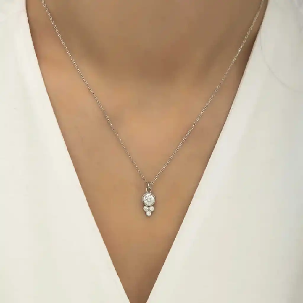Gümüş Çiğ Damlası Yuvarlak Tek Taş Bayan Kolye