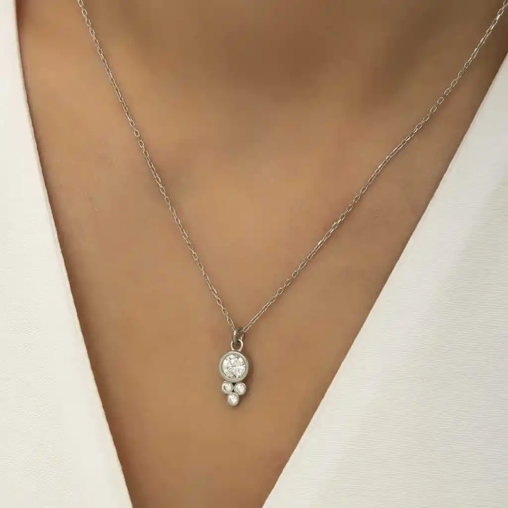 Gümüş Çiğ Damlası Yuvarlak Tek Taş Bayan Kolye