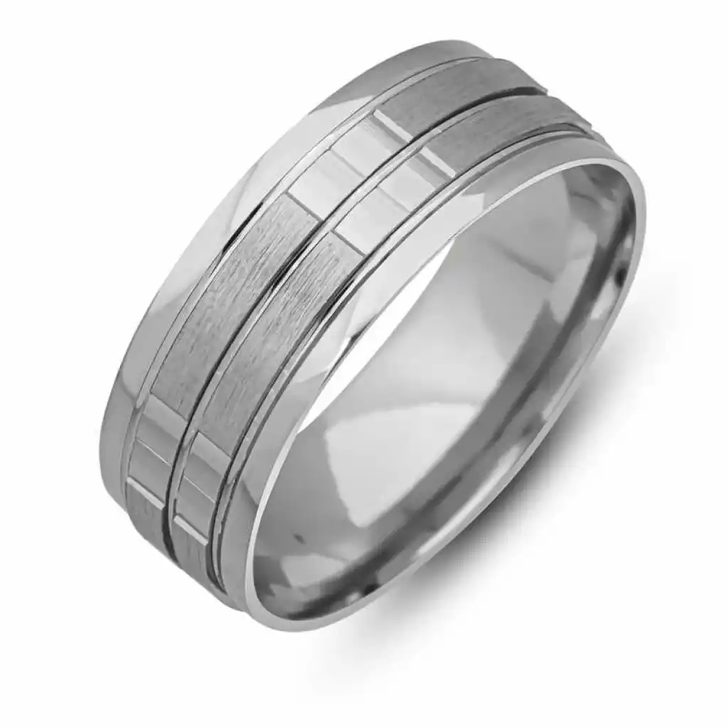 Gümüş Çizgi Desenli Rodyum Alyans