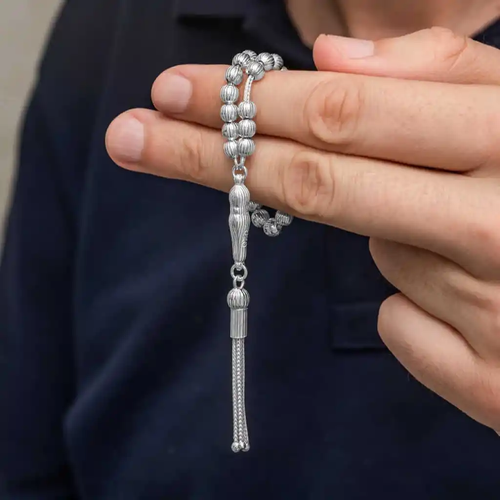 Zarif ve şık tasarımıyla öne çıkan Gümüş Çizgili Yuvarlak Erkek Tesbih,geleneksel estetik ile modern işçiliği bir araya getiriyor.Her bir boncuğu çizgili detaylarla süslenmiş olan bu tesbih,el işçiliği ile üretilmiştir ve %100 925 ayar gümüşten yapılmıştır.Hem günlük kullanım hem de özel günler için ideal bir aksesuardır.Gümüş tesbihi severek kullanabilir;doğum günü,sevgililer günü veya babalar gününde ya da özel günlerde hediye olarak tercih edebilirsiniz.Ürünlerimizin tamamı el emeği ile üretilmiştir.Gümüş ve değerli taşlar nedeniyle belirtilen ortalama ürün ağırlığında ± %10 sapma olabilmektedir.