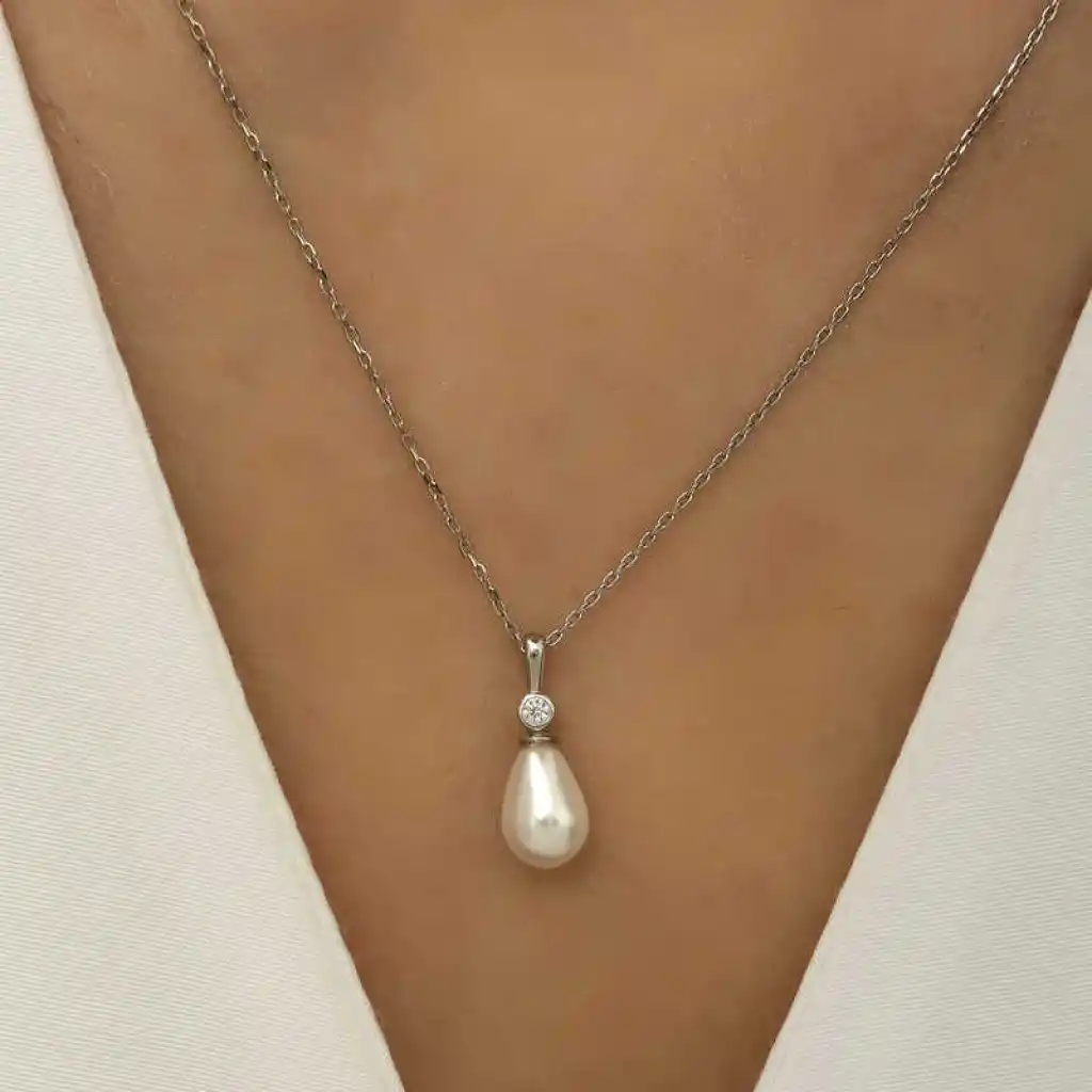 İnci sadelik ve alçak gönüllülüğü simgeler. Sade gözükmekle beraber, aslında çok kıymetli olmayı anlatır. Sevgilinize duyduğunuz aşkınızı ve duygularınızı anlatmanın en güzel yoludur inci. Parıltının, ışığın, aydınlığın ve umudun sembolüdür. Her bayanın aksesuarları arasında bulundurması gereken modası hiç bir zaman geçmeyecek olan gümüş damla inci bayan kolye ile duygularınızı sevdiğiniz kadının teninde hissettirmeye ne dersiniz... 925 ayar gümüşten imal edilmiştir. Gümüş üzerine rodyum kaplama yapılmıştır. Rodyum kaplama yapılan gümüş inci kolyeler parlaklığını uzun süre muhafaza eder, oksitlenmeyi geciktirir. Üzerinde bulunan taş kültür incisidir. Zincir boyu ortalama 45 cm"dir. Ürünlerimizin tamamı el emeği ile üretilmiştir. Gümüş ve değerli taşlar nedeniyle belirtilen ortalama ürün ağırlığında ± %10 sapma olabilmektedir.
