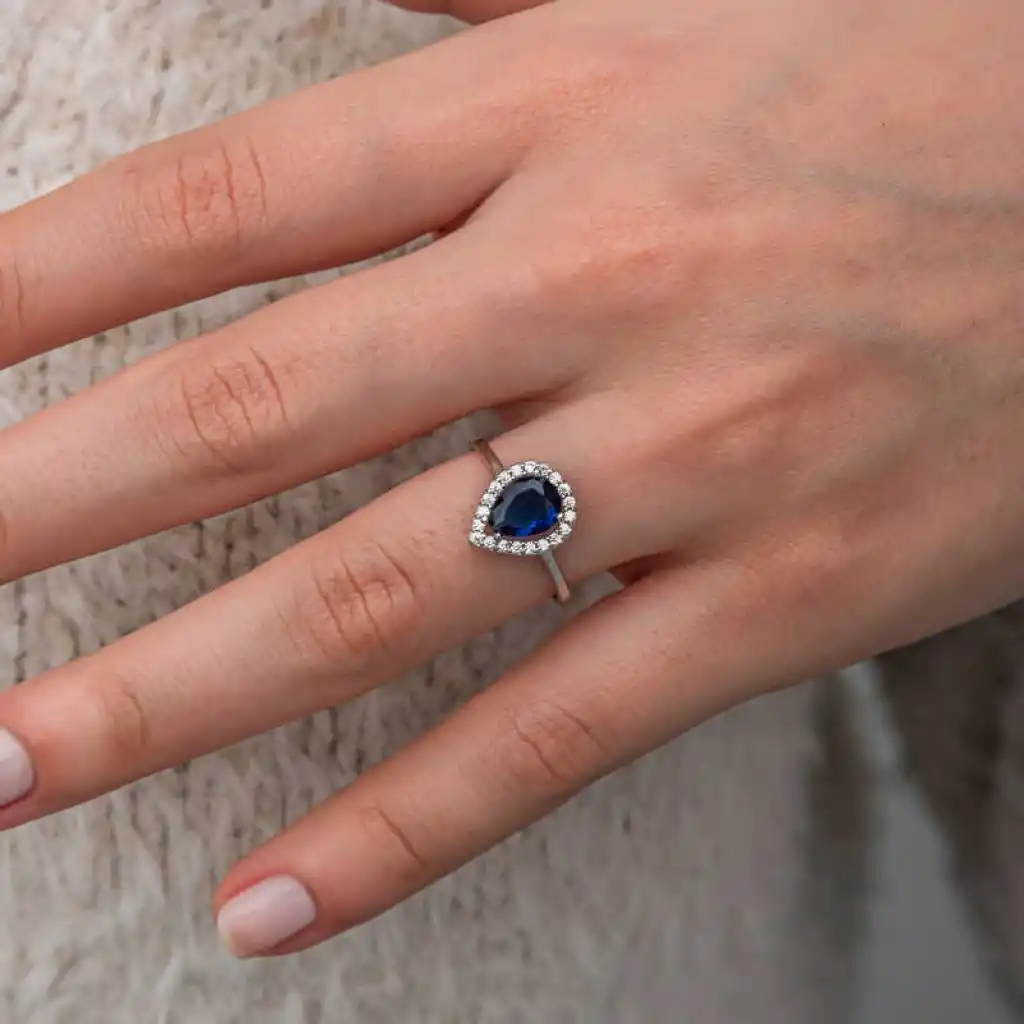 Gümüş Damla Safir Taşlı Kadın Yüzük